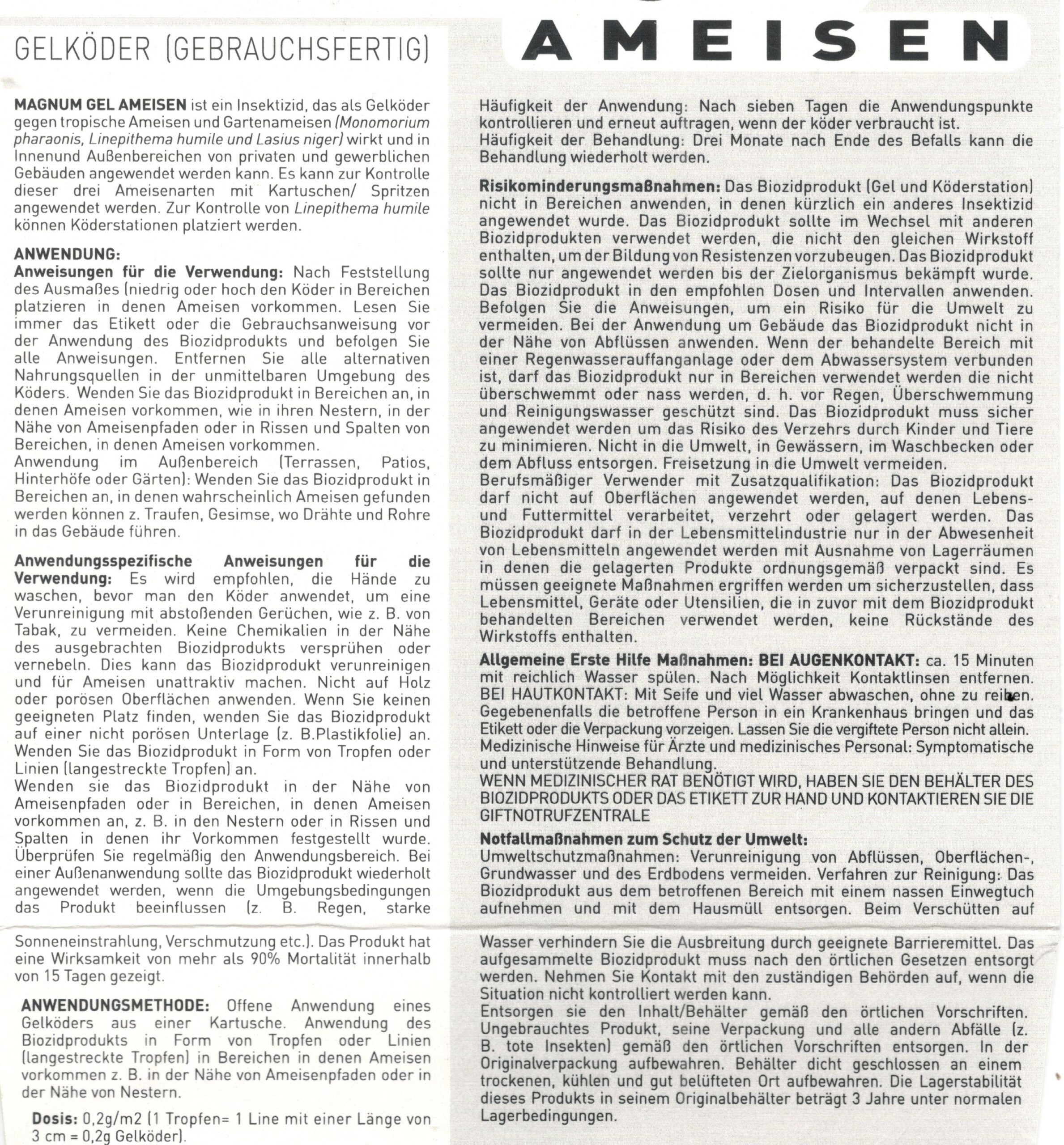 - Handelsbezeichnung: Magnum Gel Ameisen